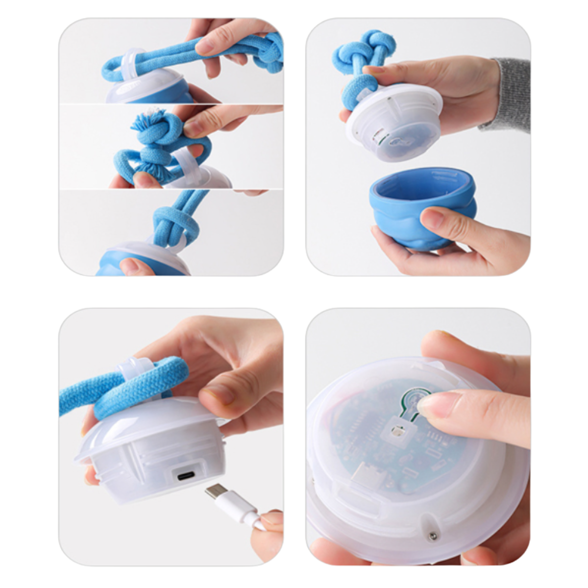 Fabricada en policarbonato y TPR de alta calidad, la pelota Interactiva está pensada para durar. Su tamaño compacto (3.0 x 3.0 x 3.9 pulgadas) la hace fácil de manipular para perros pequeños o medianos. Su diseño atractivo en color azul la hace visible y divertida.